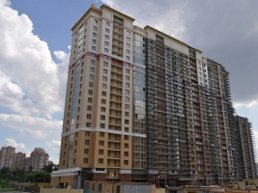 Обустройство фасадов и работы внутри здания продолжаются в первом корпусе в ЖК «Мосфильмовский». Строительство остальных корпусов уже завершено, выполняется благоустройство территории.
