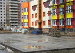 В настоящее время в детском саду завершены комплексные монолитные работы. Здание уже подключено к электросети. Строители заканчивают монтаж фасада. Параллельно благоустраивается прилегающий участок.